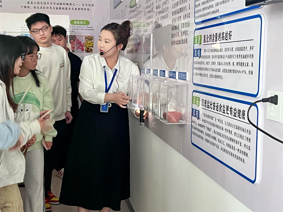 最后,南寧分公司工作人員帶領(lǐng)大家參觀食鹽科普驛站,并呈現(xiàn)了一堂有趣的食鹽科普課。課程介紹了中國(guó)鹽業(yè)的發(fā)展歷史、食鹽分類、生產(chǎn)工藝流程,以及食鹽加碘、鹽品選購(gòu)等專業(yè)知識(shí)。現(xiàn)場(chǎng)展示了如何辨別合格食鹽,提示食鹽相關(guān)誤區(qū),以及食鹽在日常生活中的巧妙運(yùn)用等實(shí)用信息。課堂妙趣橫生、通俗易懂,大家聽得津津有味,與工作人員積極互動(dòng),現(xiàn)場(chǎng)氛圍十分活躍。