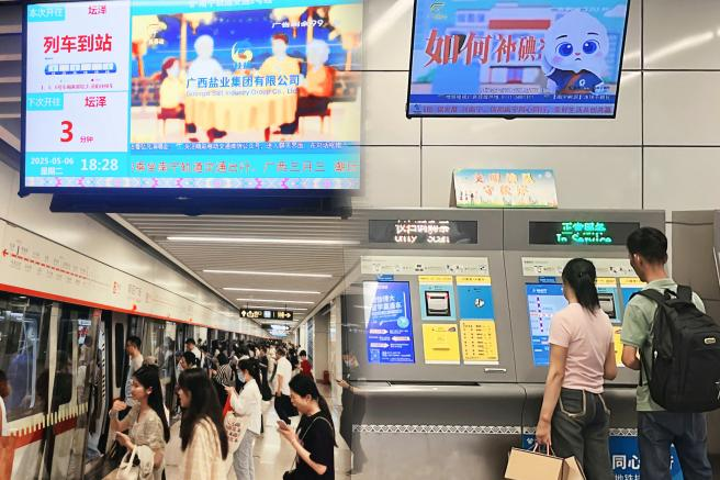 聯(lián)合廣西廣播電視臺精心制作《“鹽”續(xù)傳承》系列科普動畫片,生動科普碘缺乏病危害及科學(xué)用鹽知識,并在南寧地鐵1-5號線車載電視每日循環(huán)展播,形成流動的科普課堂。自2025年5月全渠道展播以來,累計觸達客流超980萬人次,為鞏固防治成果厚植群眾基礎(chǔ)。