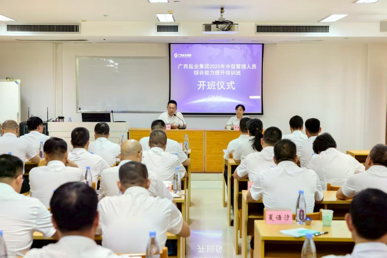 為深入貫徹落實新時代人才工作要求,進一步提升中層管理人員綜合管理能力與履職水平,打造高素質管理團隊,7月15日-18日,廣西鹽業集團在中共廣西區委黨校舉辦2025年中層管理人員綜合能力提升培訓班。集團總部各部室及所屬企業中層管理人員、人才工程培養對象、新提拔干部等50余人參訓。集團黨委書記、董事長邱潮涌出席開班式并作動員講話。